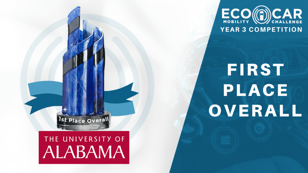 The University of Alabama has been named the Year Three EcoCAR Mobility Challenge champion. The Ohio State University and West Virginia University teams finish second and third.