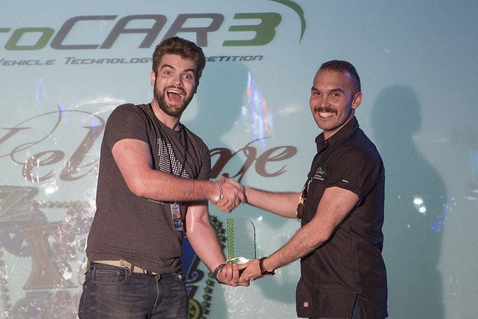 Last night, students stepped away from the garage for time-honored EcoCAR 3 tradition: Skit night, hosted this year at Z’s Fun Factory. At Skit Night, teams shared thirty-second parody videos, and had a chance to race go-karts, play mini golf, and socialize. The organizers also announced the winners of a few pre-competition deliverables. Find the skit videos and award announcements below.