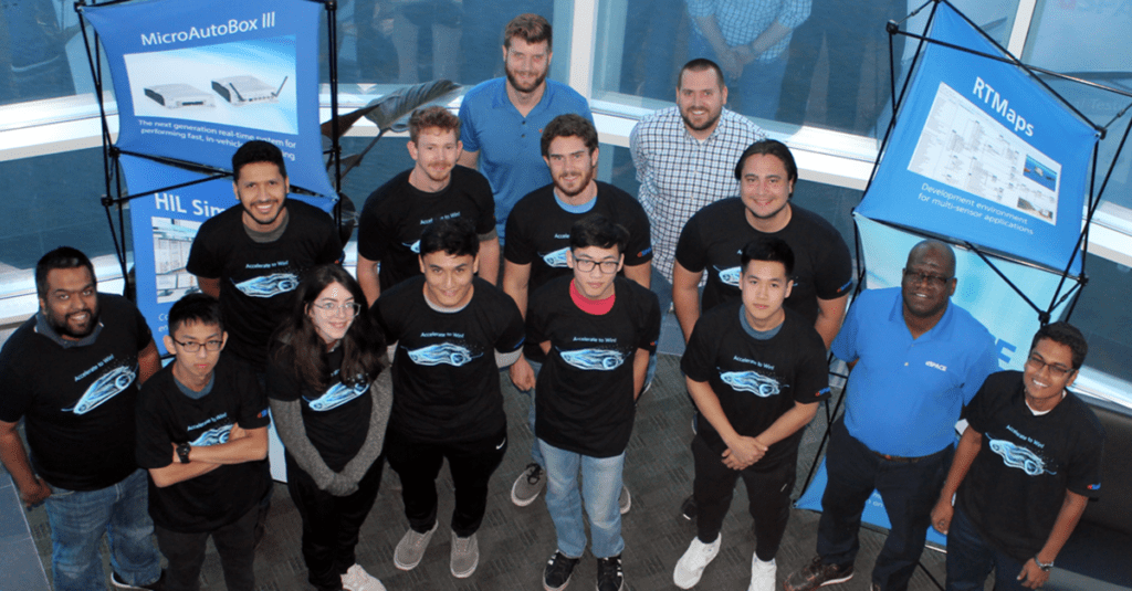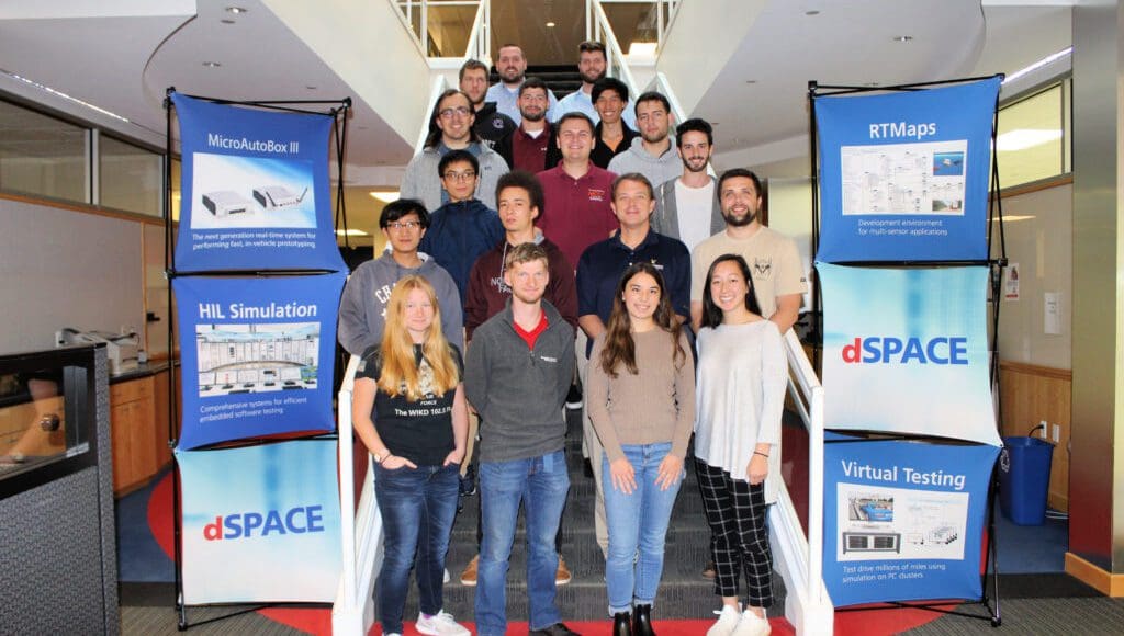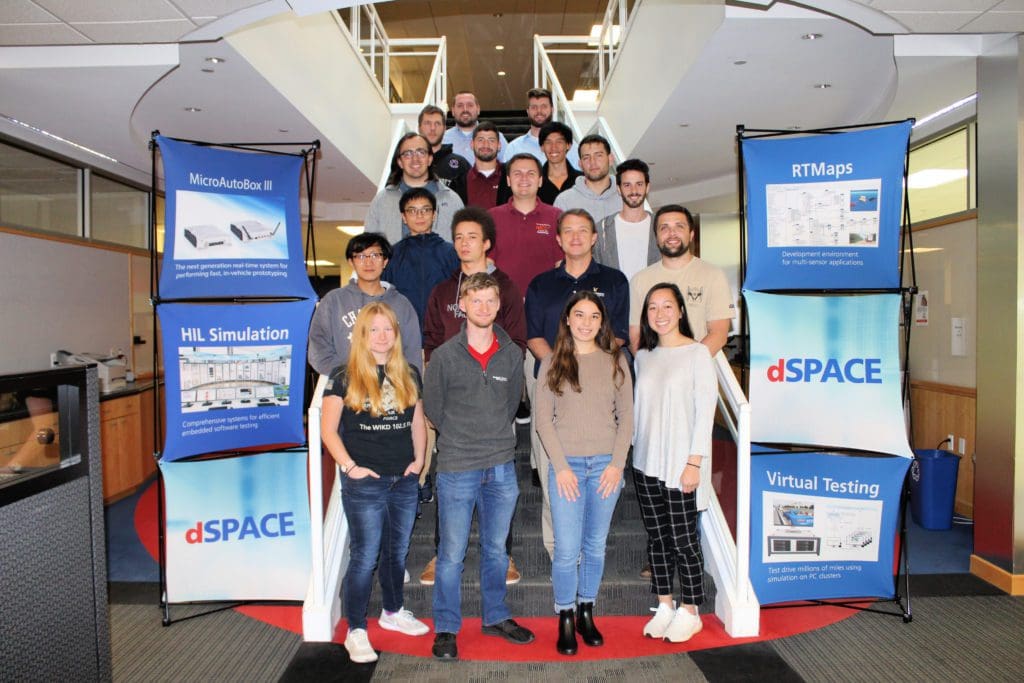 This week students from the EcoCAR Mobility Challenge teams had the opportunity to attend the dSPACE Workshop. Leadership-level competition sponsor, dSPACE, hosted the exclusive workshop at their facility in Wixom, MI. This workshop has been specifically constructed for the Propulsion Controls and Modeling (PCM) sub team. The PCM sub team is responsible for developing the hybrid supervisory controller, which acts as the “brains” of the teams’ vehicles. This involves modeling, testing, and controls development. Throughout the week, EcoCAR teams came in two waves of six teams in order to receive two days of thorough, hands-on training.