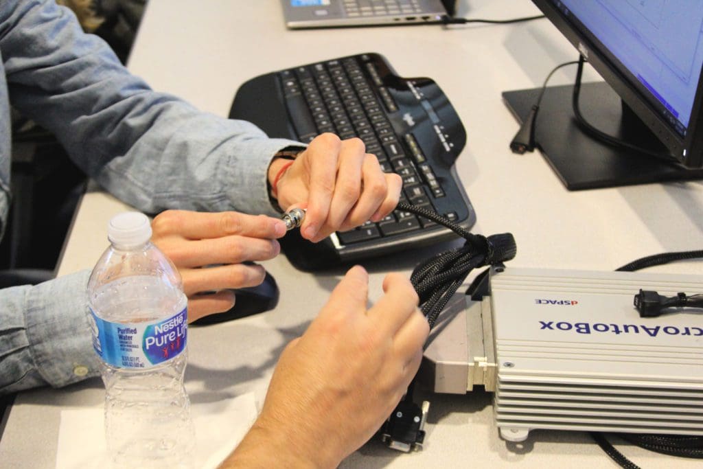 Teams also learned how to use ControlDesk to interact with software running on the MABXII and HIL systems in real time. The ControlDesk software enables seamless Electronic Control Unit (ECU) development by performing all of the necessary tasks in a single working environment. ControlDesk allows teams to do all sorts of testing including data acquisition of signals and fault injection simulations (you purposely add faults into your system including faulty wiring, incorrect signals, etc., to see if your supervisory controller hardware reacts appropriately and safely).