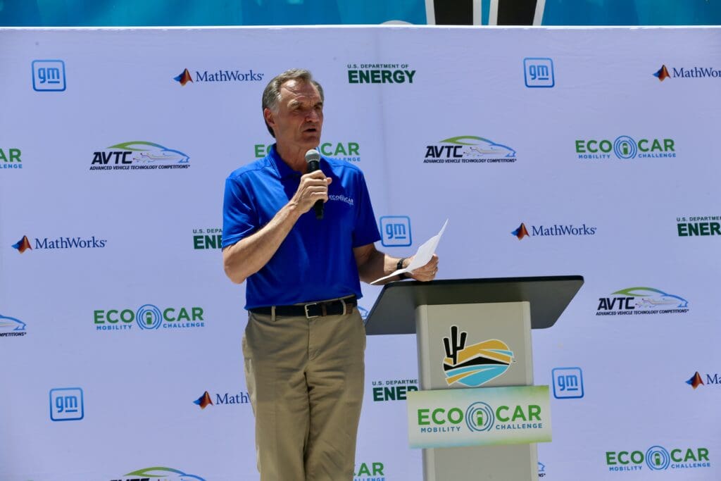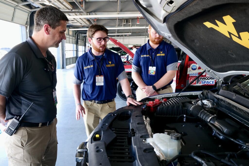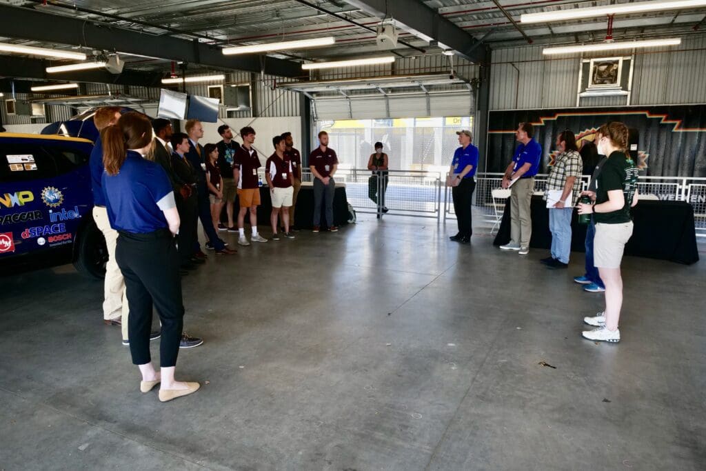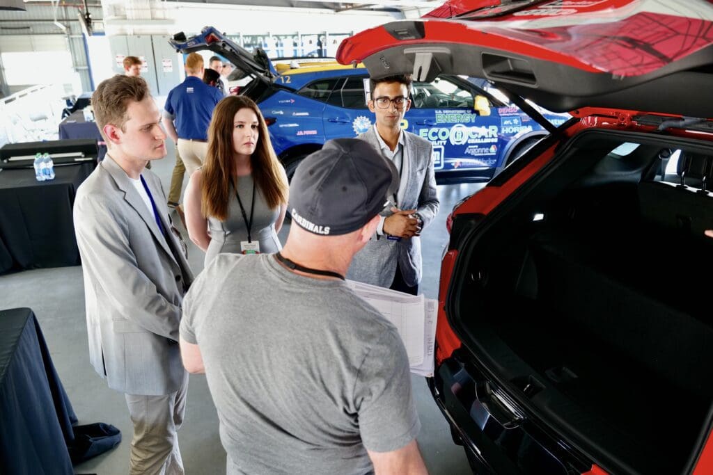 The event-filled day kicked off with 30 Middle Schoolers who came to the Phoenix Raceway to attend the EcoCAR Education Day. During Education Day, the students learned about EcoCAR, the participating teams, and electric vehicles. They were able to make their own EcoCAR breadboard vehicles while learning about Hybrid Electric (HEV) and fully Electric Vehicles (EV). The students then put their vehicles to the test and raced them on the Phoenix Raceway track!
