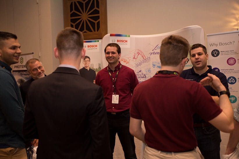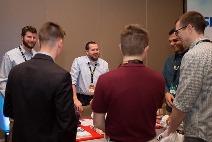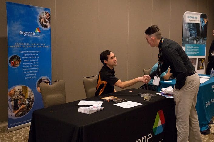 Teams also had the opportunity to highlight their talents at the Sponsor Social Networking and Recruiting Event. Students spent part of the evening mingling with various competition-level sponsors at booths hosted by recruiters from each organization. The sponsors’ exhibits allowed students to learn more about those organizations and network with industry leaders, and they also provided an outlet for sponsors to hear more about the status of the teams.
