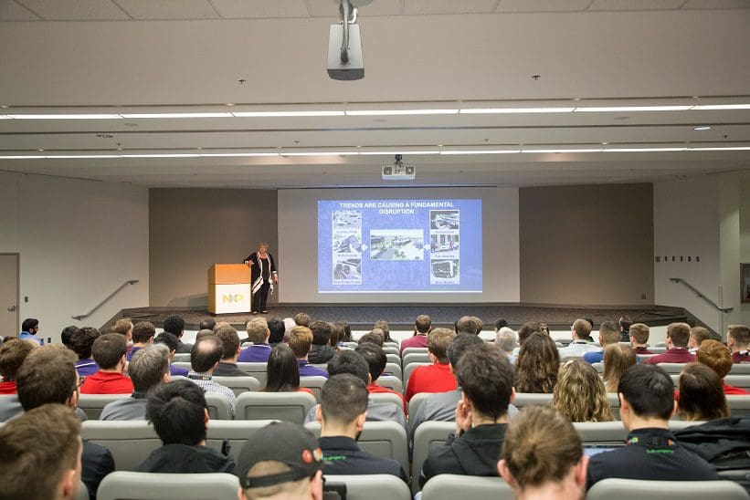 From February 14-16, EcoCAR Mobility Challenge teams, organizers, and sponsors attended the Year One Winter Workshop! The workshop took place at the NXP Semiconductors headquarters in Austin TX. The workshop kicked off with a warm welcome from Ron Martino, VP & GM of the i.MX Applications Processor Product; NXP, Jacob Krakauer, Automated Driving Strategic Marketing Engineer; Intel, Ann Schlenker, Director, Center for Transportation Research, Argonne National Laboratory; and Kristen Wahl, AVTC Director, Argonne National Laboratory.