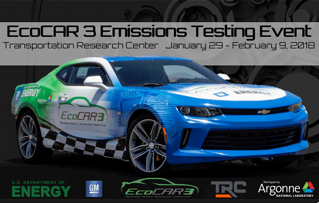 Today kicks off the EcoCAR 3 Emissions Testing Event (ETE) at the Transportation Research Center (TRC) facility in East Liberty Ohio. Over the course of two weeks, EcoCAR 3 teams will attend the ETE in three separate waves. Teams will have the opportunity to utilize TRC’s dynamometer equipment and facility to conduct a variety of tests and collect valuable data on their Camaros.