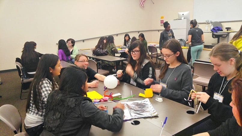 This event even allowed these young girls to do some engineering of their own as they were challenged to move a ping pong ball by creating their own pulley system out of household materials! ASU EcoCAR 3 team members volunteered their time to work with girls in small groups and guide them through the processes of brainstorming, development, and implementation.
