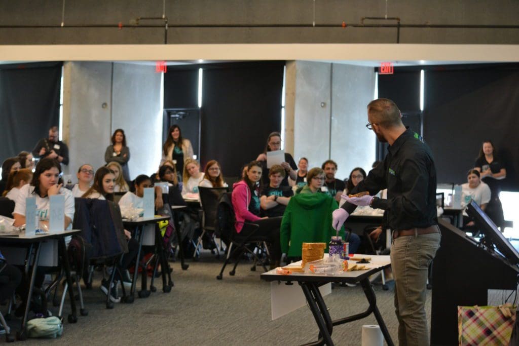 The morning kicked off with a presentation from AVTC Controls and Simulation Engineer and EcoCAR Organizer, Jessica Britt. She shared her passion for engineering, her journey through school, and how she went from Georgia Tech EcoCAR team member to Organizer at ANL. She then challenged the participants to write out directions on how to construct a perfect peanut butter and jelly sandwich. This seemingly simple activity challenged the attendees to think critically about each step and how an entire process can be derailed if specific directions are not communicated directly.