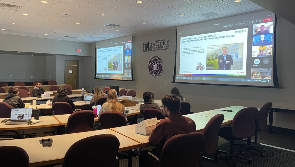 Collaboration between students and sponsors is a key factor in what makes the EcoCAR Mobility Challenge so unique. The chance to work with major worldwide companies to connect both teams together can open eyes, expand horizons, and create opportunities. For Year 4, Mississippi State University was paired with Bosch to plan out and execute a personalized activity. Upon hearing news of the collaboration sponsor, the MSU team was excited for what was to come and eager to learn from Bosch representatives. Knowing that the students wanted to listen to employees and hear what they had to share, both parties agreed that a Lunch & Learn would be a helpful route.