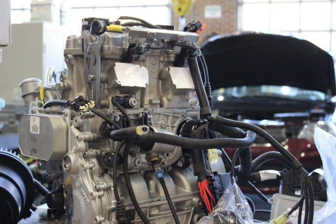 In addition, the team chose to use a two cylinder, turbo-charged Weber engine for the Camaro. Originally designed for snowmobiles and wave runners, the Weber engine is compact and lightweight. The MSU EcoCAR 3 team is converting the engine to run on E85 gasoline.