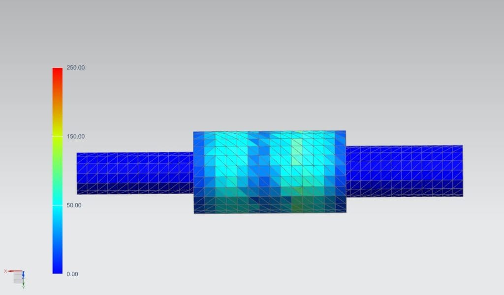 AAM suggested using a custom cylindrical shaft and drilling holes on the cylindrical shaft that would correspond to the diameters of the GKN half shaft and the General Motors half shaft. Once the holes were drilled into the custom cylindrical shaft, both the General Motors and GKN half shafts would be placed into the cylindrical shaft then press fitted and welded together. AAM also provided recommendations on what material should be selected for the custom cylindrical shaft. Below is the finite element analysis of the half shaft.