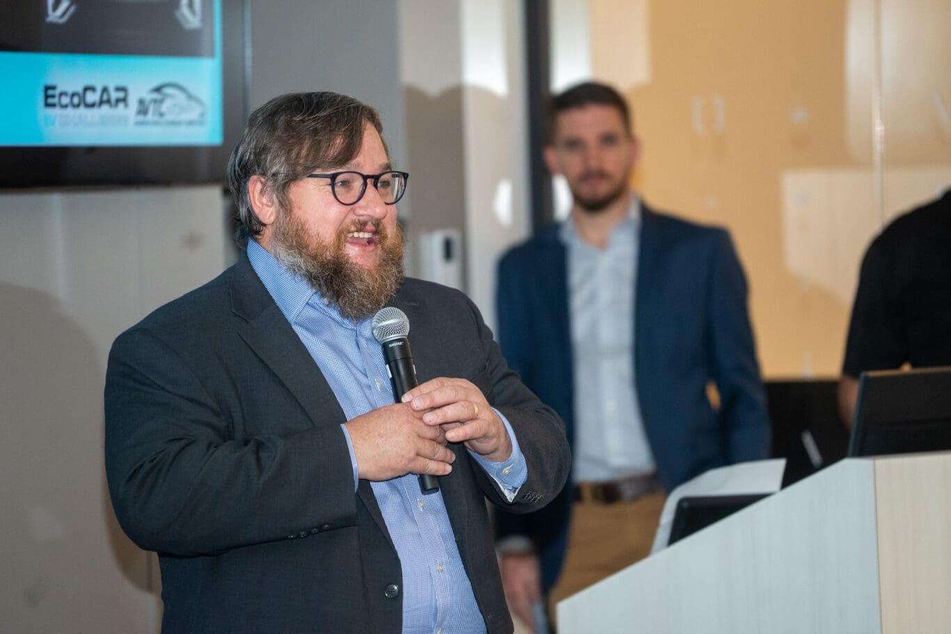 To kick off the event, attendees heard from Austin Brown, Director of the Vehicle Technologies Office at the U.S. Department of Energy. Brown underscored the importance of government, academia, and industry collaboration to drive innovation in sustainable transportation. Following Brown, Avinash Nehemiah, Head of Product Management and Marketing – Design Automation at MathWorks, delivered remarks on the power of digital transformation in engineering and how tools like MATLAB and Simulink are driving advancements in vehicle design. Bill Cawthorne, Chief Engineer of the Ultium GEN1 Renewable Energy Storage System at General Motors, then shared insights into GM’s forward-thinking approach to electrification, providing teams with valuable industry perspectives on renewable energy and electric vehicle development.