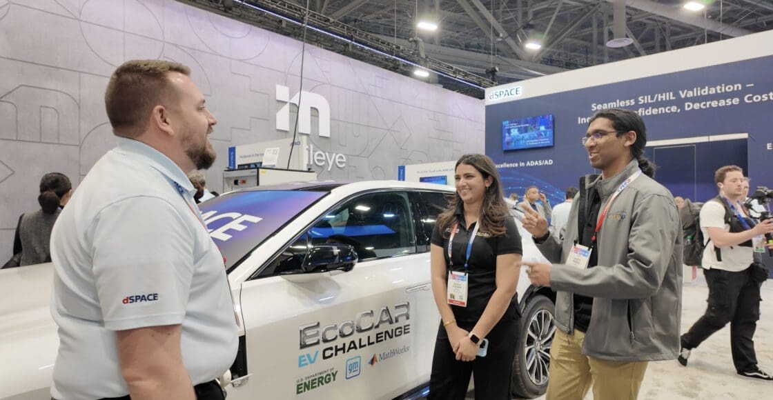 Riddhi Puranik, Communications Manager for UC Davis EcoCAR, shared her excitement about the event. “Interacting with the dSPACE team and engaging with CES attendees was such an incredible experience. Sharing the vision and innovation behind the EcoCAR EV Challenge with such a wide audience was truly rewarding.”