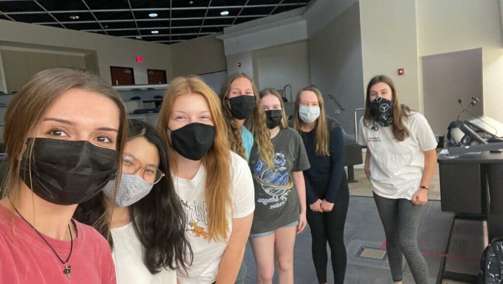 “Our first event to kick off the semester was a social event, where everyone had the opportunity to get to know each other and get some engagement early on. Then we watched a movie together and just had some fun with the team,” Hamilton continued. “Later in the semester we had a LinkedIn profile building workshop, where we partnered with Alpha Omega Epsilon, the STEM sorority on campus. We had some women from their organization joining us, so this event was a great opportunity to make some new connections while building a professional online profile.”
