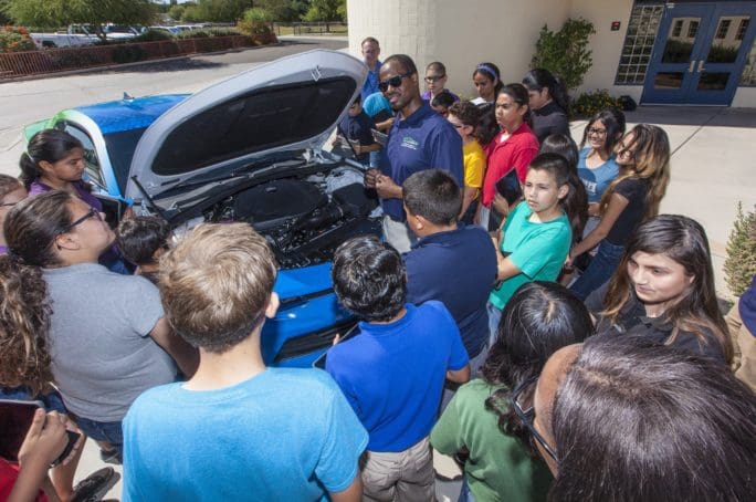 Visiting local school students is important to EcoCAR 3 and to Communication Managers during workshops and competition, and they won’t stop here. During the next leg of the competition in San Diego, the CMs will visit a local high school to encourage the students to focus on engineering and science as they enter college.